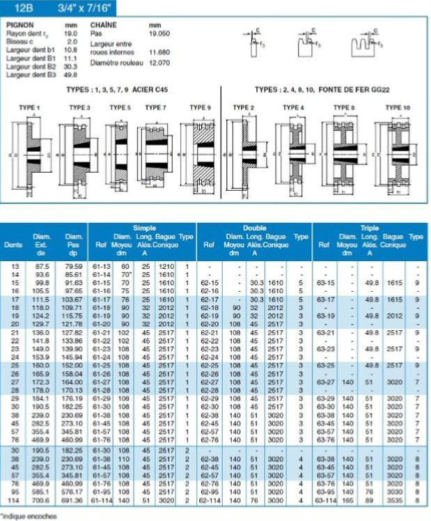 Pour chaîne 12B au pas 19.05 mm double