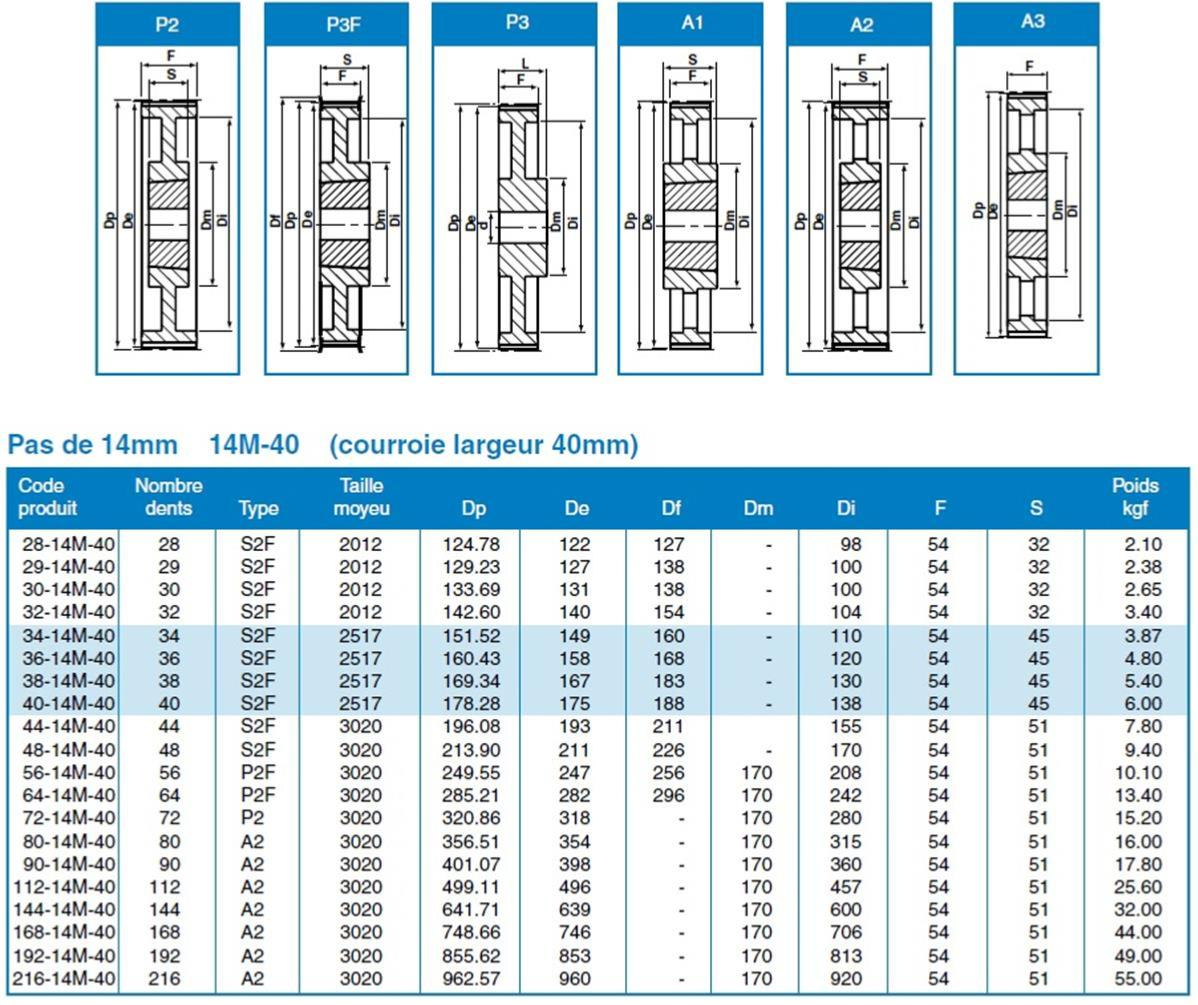 Ces poulies sont souvent utilisées sur des épareuses avec des courroies 1400-14M-40